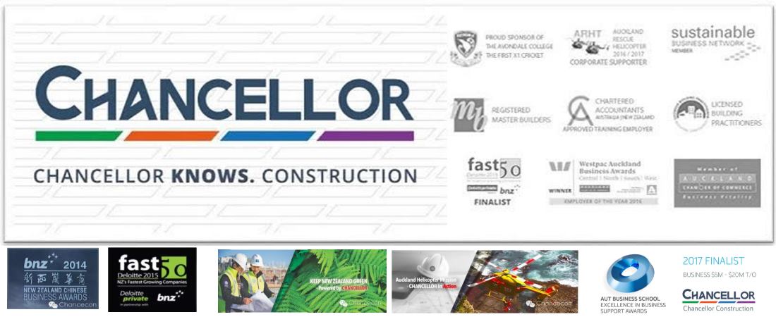 Chancellor is a member of NZ Sustainability Business Network. The company initiated an ongoing programme named Keep NZ Green, which is designed to minimise environmental impact on landfill from building waste. Chancellor is also a supporter of Auckland Helicopter Mission Trust, and main sponsor of a high school cricket team at Avondale College. Corporate social responsibilities are witnessed along with the growth of Chancellor. Chancellor Construction was proudly selected as the finalist of Deloitte Fast 50 in 2015, and the winner in 2016 Westpac Business Awards under the Employer of the Year category. With strong attitude of pursuing excellence in the industry, Chancellor Construction always sets the target to exceed our client’s expectations